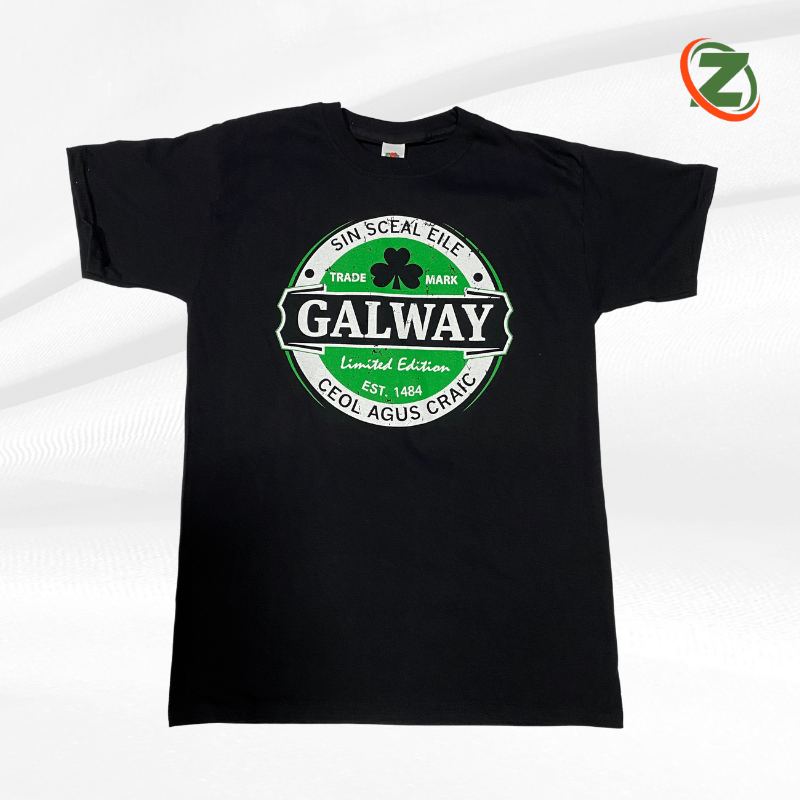Crafted with comfort and style in mind, this black T-Shirt is a versatile choice for casual wear. The Galway Text design adds a touch of uniqueness, while the Irish phrases pay homage to the rich heritage of Galway.