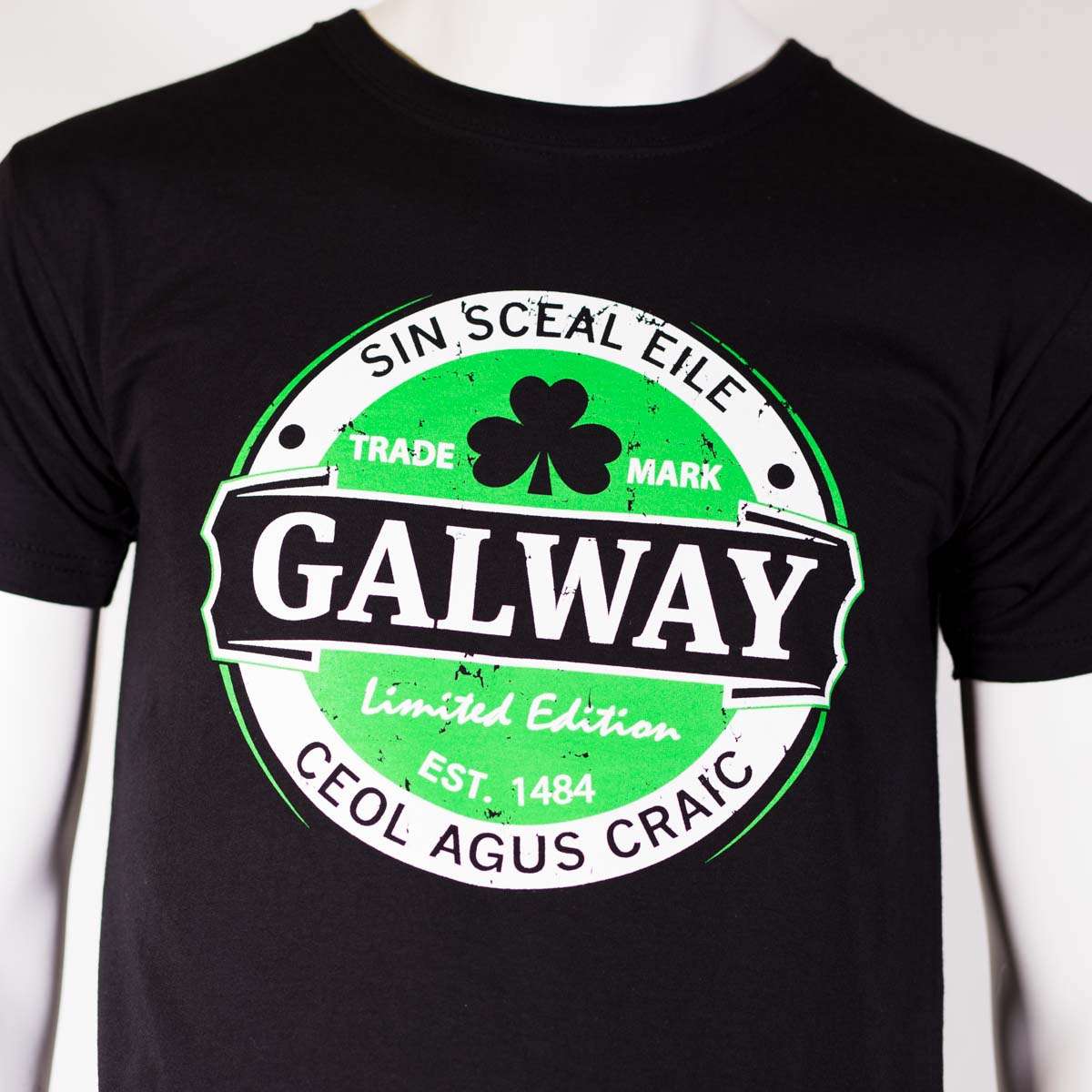 Designed to capture the essence of Galway's vibrant culture, this shirt combines the charm of beer mat typography with the Irish phrases "Sin Sceal Eile" and "Ceol Agus Craic." It's a celebration of Galway's storytelling spirit and its love for music and fun.