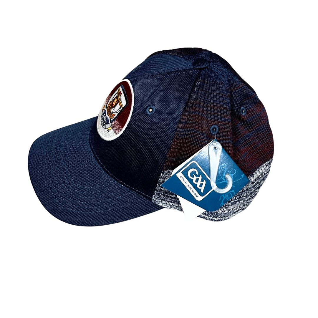 Show your support for Galway GAA with the Galway GAA Fleck Cap. This stylish navy cap features maroon flecks and prominently displays the Galway GAA logo on the front.