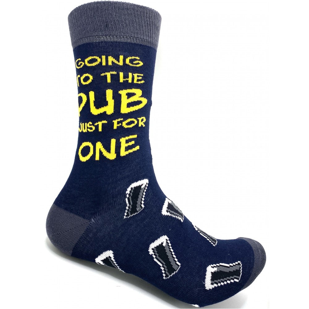 Show your love for the local pint with the Going to the Pub Socks. These fun socks feature the cheeky phrase “Going to the Pub for just one pint” along with mini pint designs, making them the perfect accessory for anyone who enjoys a visit to the pub, whether it's for one pint or a few more!