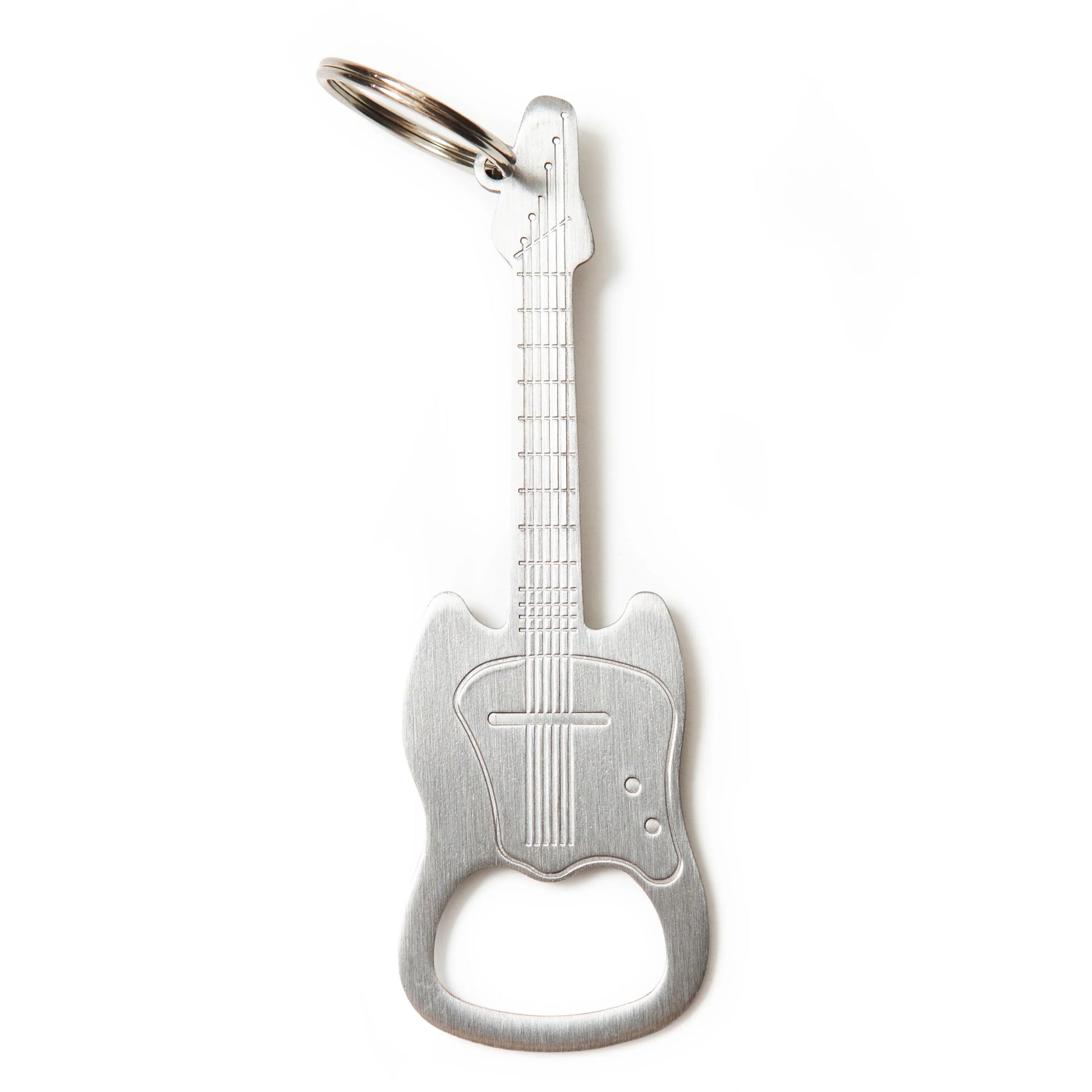 Rock 'n' roll meets practicality with this stainless steel Guitar Keychain Bottle Opener! Shaped like a classic electric guitar, it's the perfect accessory for music lovers. Keep it on your keys for whenever you need to pop a bottle cap - because every rockstar needs their refreshments!