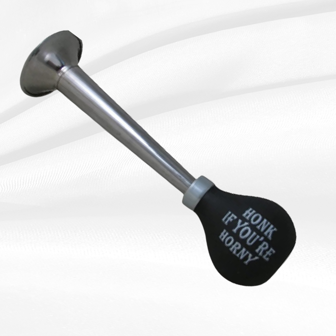 With its bold print of "HONK IF YOU'RE HORNY," this horn is a playful and cheeky way to add some humor to your daily commute or any road trip. It's the perfect icebreaker and will surely get people talking and laughing.