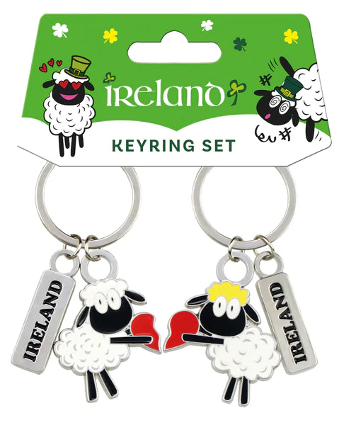 Celebrate love and Ireland with our Ireland Sheep Two Keyring Set. This charming set features two different, yet complementary keyrings, each depicting adorable sheep in love. When brought together, the halves of the heart keyrings unite, symbolizing a perfect match. Available for shipping on ZhivagoGifts.ie and in-store at Zhivago Gifts in Galway.