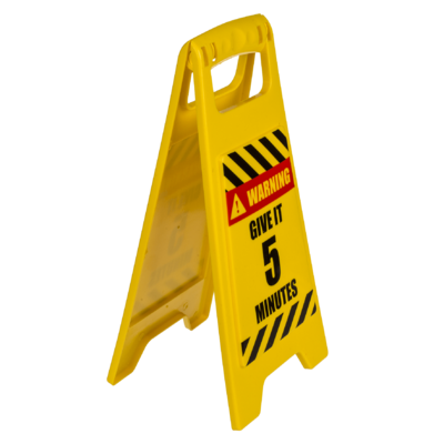 Add a touch of light-hearted comedy to the loo with this small, yellow plastic sign. With a cautionary "Give It 5 Minutes" on one side and a bold "Warning" on the other, it's the perfect way to signal a recent bathroom use with a smile.