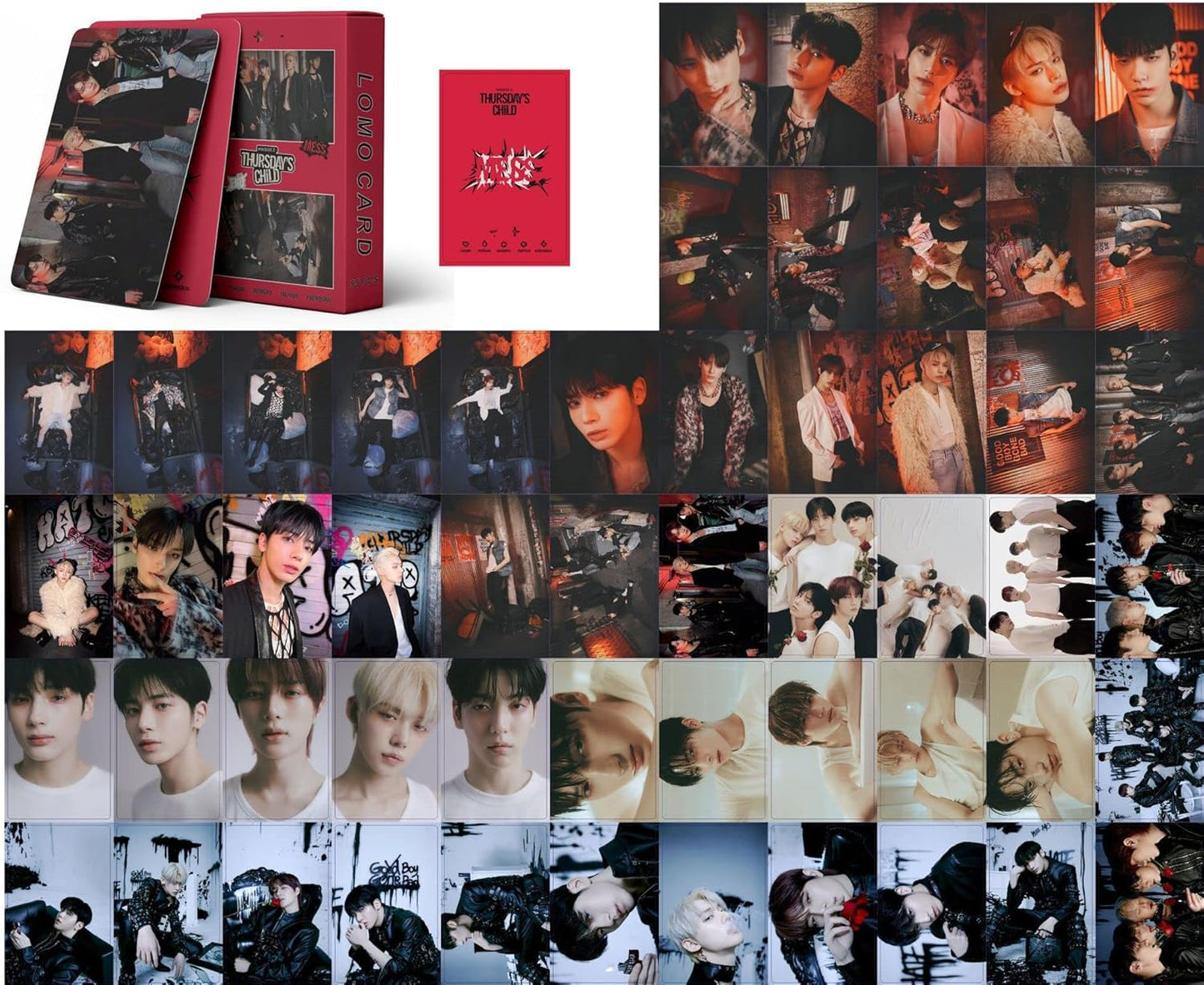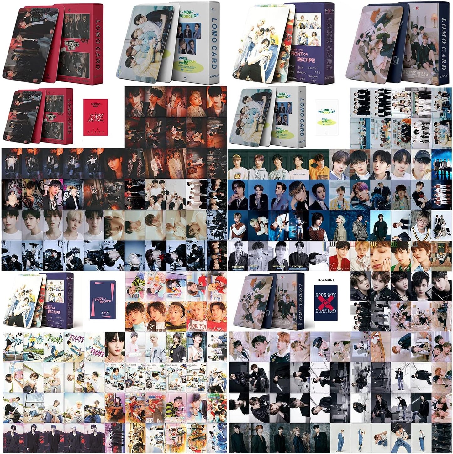 Super Big Package: Each pack includes 55 high-quality photo cards, featuring various themes such as TXT The Chaos Chapter: FIGHT OR ESCAPE, TXT TEMPTATION, TXT Thursday's Child, and TXT Good Boy Gone Bad.